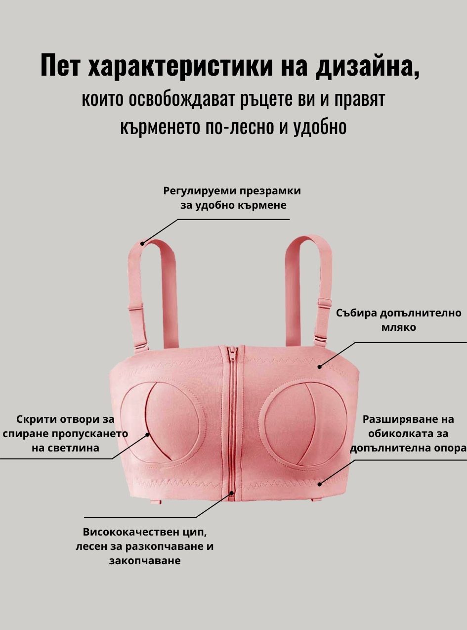 Регулируеми презрамки, които прилягат перфектно на различните размери бюст и гръдна обиколка на кърмещите майки.