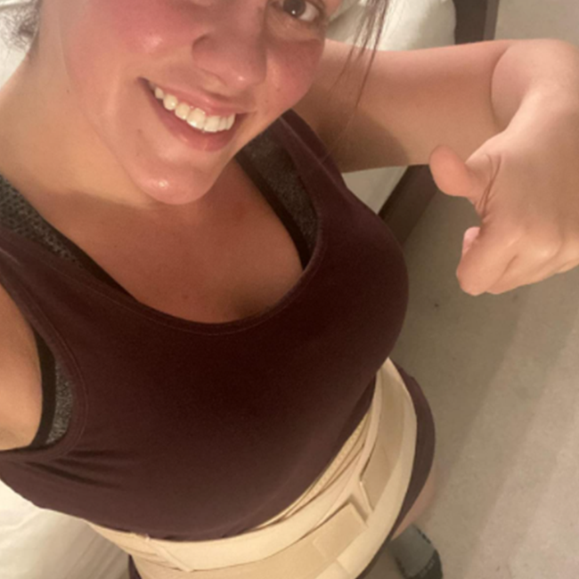Стабилизира зоната около следоперативния разрез, намалявайки болката при движение.